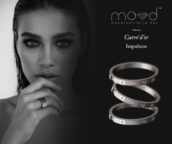Impuls, die erste Kreation dieser Linie, vereint zwei Texturen von 18k Graugold: