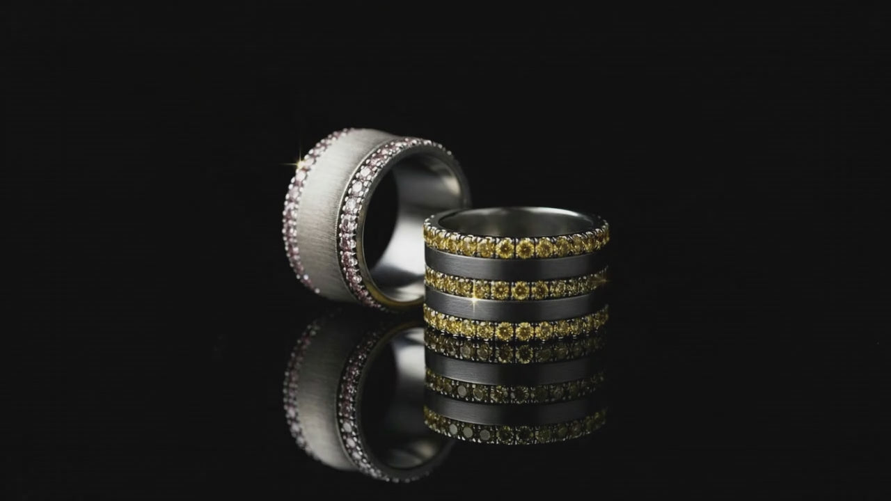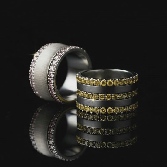 Large Fassung mit 2,1mm rosa Pur Diamanten aus Zermatt auf einer Seite vollständig besetzt.